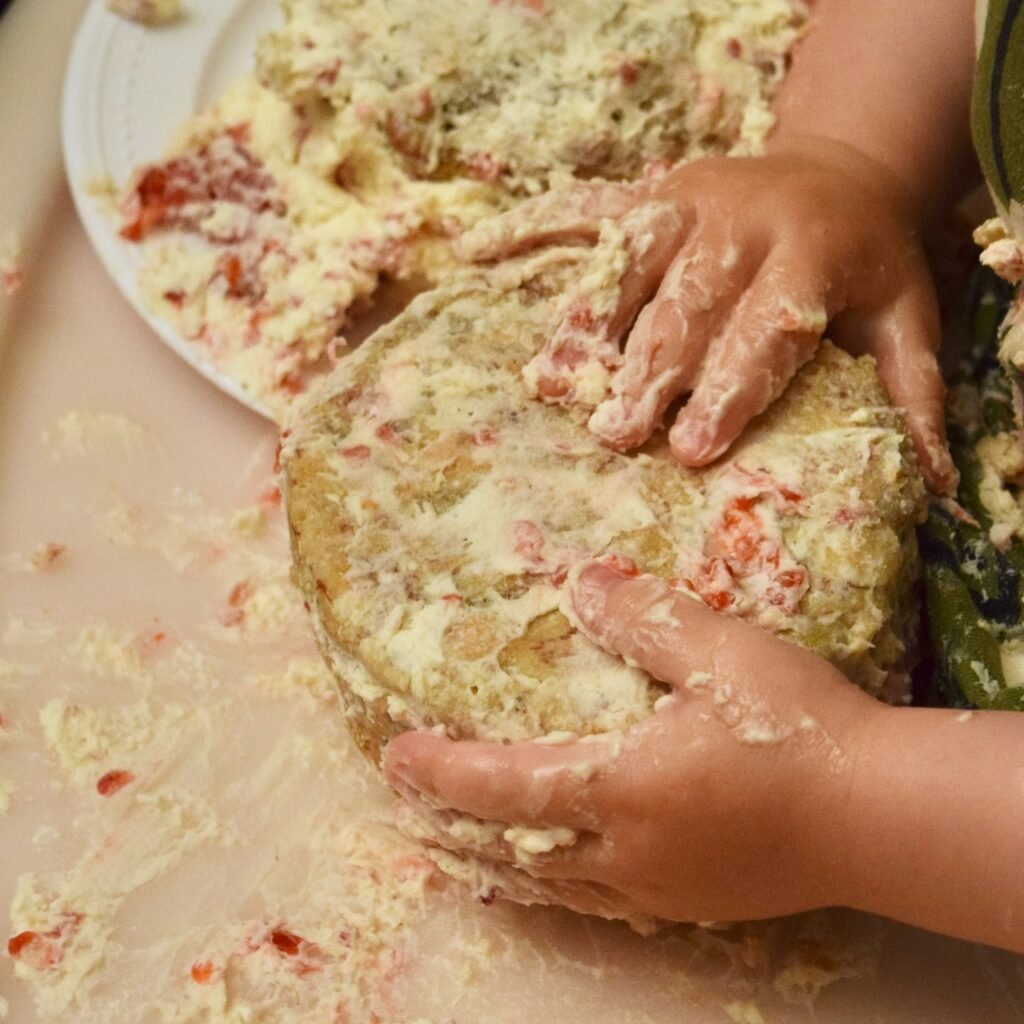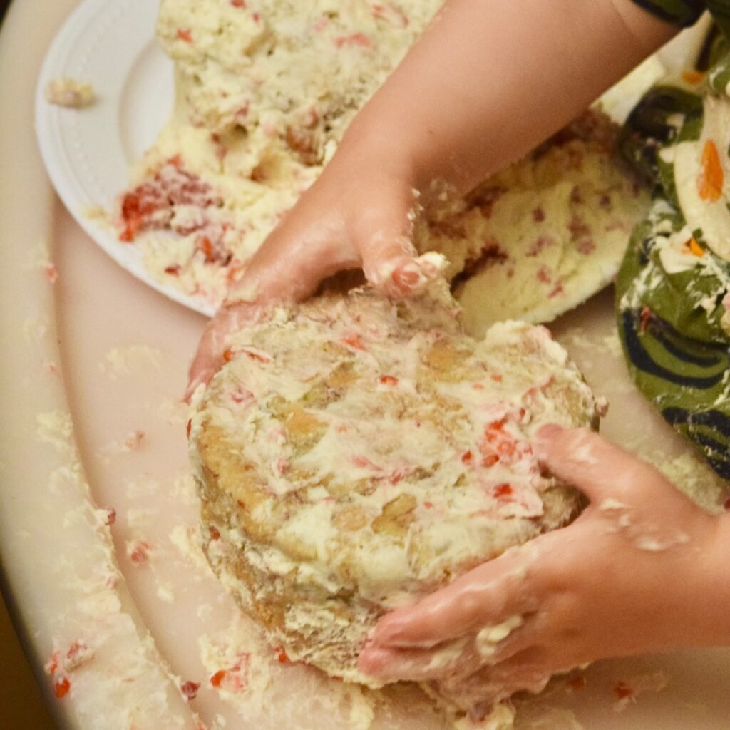 Our family has April birthdays galore. This month we celebrated with a little “party” at home, with good food . For dessert, I baked some cookies and made my husband, stepdaughter, son in law, and grand baby, their own little 4″ birthday cakes in different flavors (that we all shared). In a separate post, I’ll share my recipe for how I make and flavor my incredibly delicious Whipped Cream Cheese Frosting in vanilla, chocolate, berry, along with the sugar-free method I used for Baby’s First.