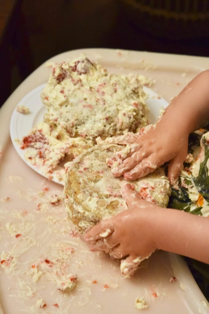Why naturally sweet? Babies have a very sensitive sense of taste because they’re born with a more responsive taste system with more taste buds – twice as many as adults. That makes flavors feel stronger to them. To anyone else, this cake is not sweet at all and seems more of a breakfast style muffin. To a one year old baby, it is pleasing, sweet, and familiar.
