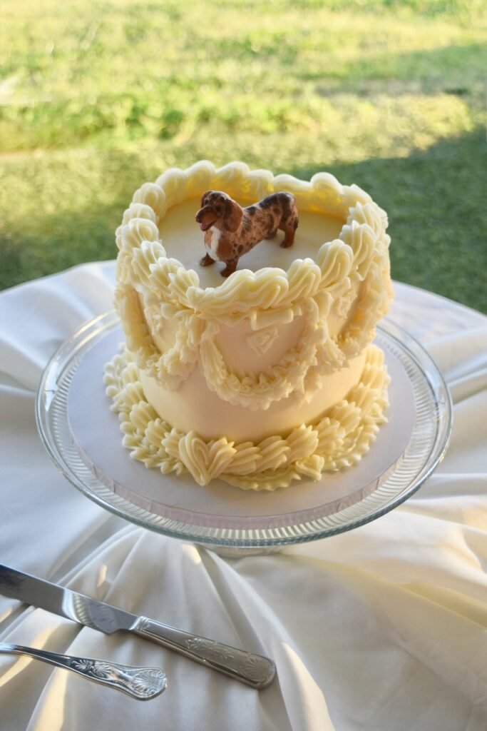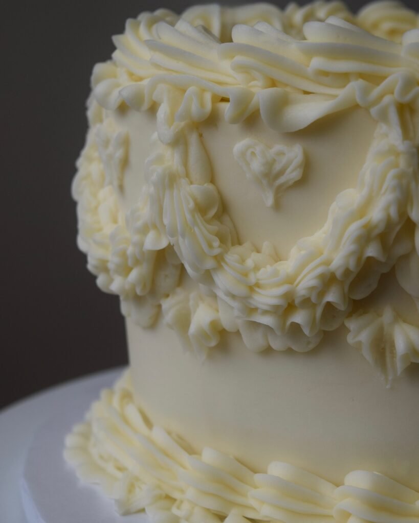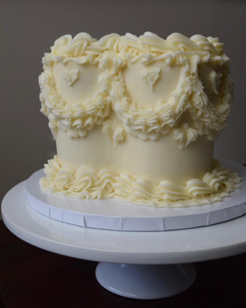 Set apart by the sweetheart table, was a sweetheart cutting-cake. A 6″ two-layer Red Velvet was covered in vanilla buttercream using a vintage piping technique. I love making every cutting cake a little different – unique for each couple.