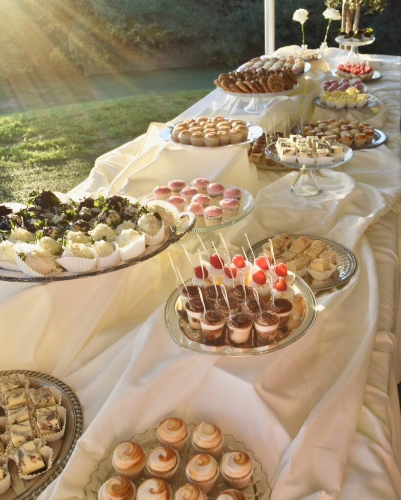 Working closely with Mother of the Bride, Janina, and Angelina, I designed a dessert table spread in a perfect menu to fulfill the dream-vision of a generous and gorgeous dessert table spread.