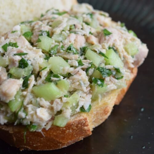 I’m sharing my recipe for making tuna, with fresh Italian flavor. I use ingredients that add texture and bright, fresh flavors for this delicious lunch or snack, to top bread for a classic Italian-style sandwich, made with no mayonnaise. If I feel like a low-carb, gluten-free meal, I use this to top a salad or as filling for lettuce wraps.