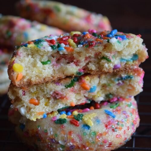 - 1/2 cup assorted sprinkles Mix assorted sprinkles into your batter. The best outcome are colorful jimmy and confetti sprinkles. Sprinkles are typically vegan